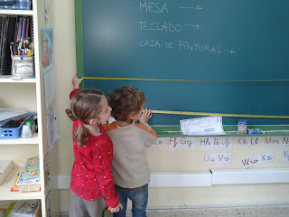 Para empezar hemos visto los números que hay en nuestro cuerpo: talla, peso, número de pie...; luego en nuestra vida: número de teléfono, de casa, portal, piso, fecha de nacimiento...; a nuestro alrededor: en la clase, por parejas, con un metro fuimos midiendo diferentes objetos (o a nosotros mismos!) y lo anotamos en un papel, cada pareja acordaba de antemano qué cosas iba a medir.